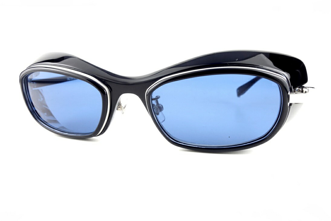 サングラスとしても、クリアレンズ(度付き)を入れて雰囲気のある眼鏡にしても存在感のあるスペシャルアイウェアです! サイズ ■フレームカラー:Black marble×Silver レンズカラー:ブルー MADE IN JAPAN ■レンズの横幅:52mm ■レンズ縦幅 :30mm ■ブリッジ幅 :21mm ■全体の横幅:150mm ■テンプル長 :135mm 付属品:※別売りのFACTORY900専用ハードケースをお付けいたします。